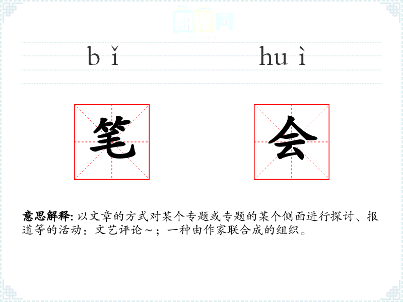 以文章的方式对某个专题或专题的某个侧面进行探讨、报道等的活动:文艺评论~;一种由作家联合成的组织。