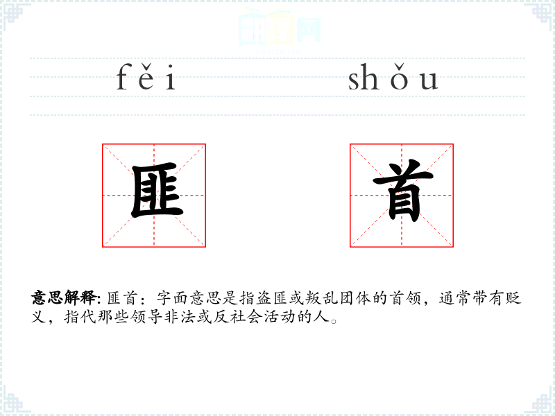 "匪首"的意思解释、匪首是什么意思由翻译网汉语词典查词提供。