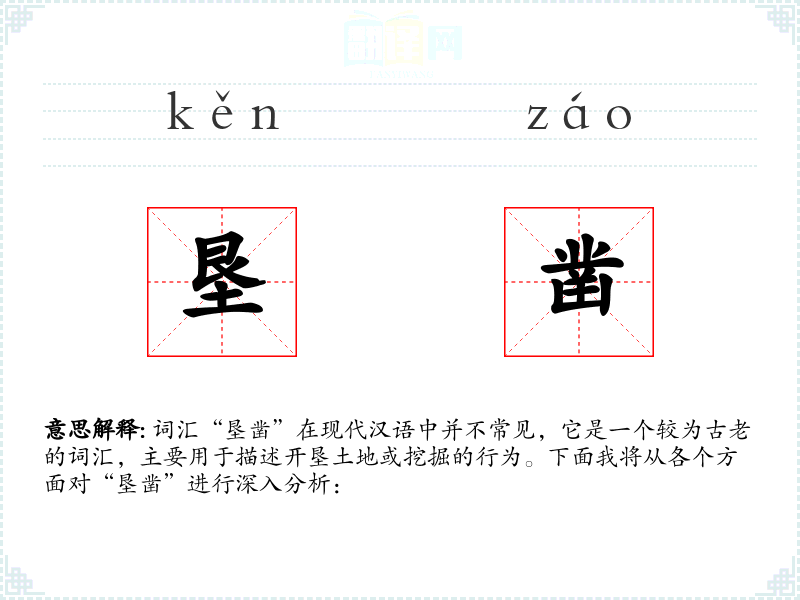 词汇“垦凿”在现代汉语中并不常见,它是一个较为古老的词汇,主要用于描述开垦土地或挖掘的行为。下面我将从各个方面对“垦凿”进行深入分析:
