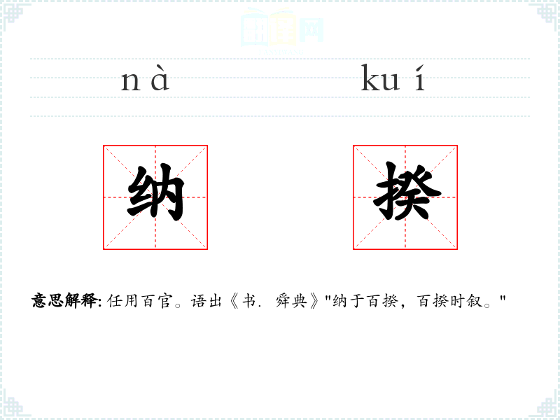 任用百官。语出《书.舜典》"纳于百揆,百揆时叙。"