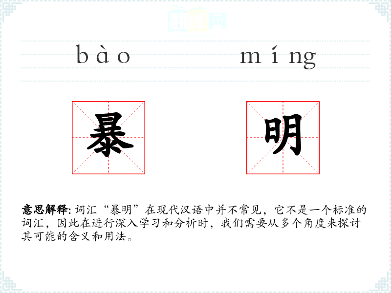 词汇“暴明”在现代汉语中并不常见,它不是一个标准的词汇,因此在进行深入学习和分析时,我们需要从多个角度来探讨其可能的含义和用法。