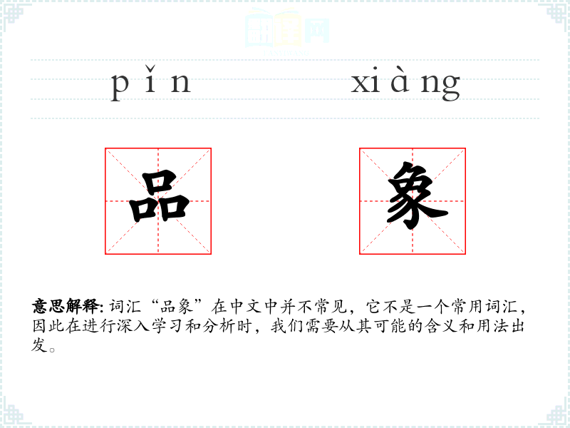 词汇“品象”在中文中并不常见,它不是一个常用词汇,因此在进行深入学习和分析时,我们需要从其可能的含义和用法出发。