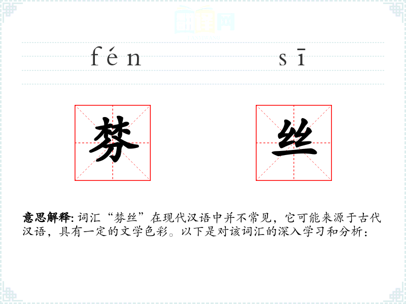 词汇“棼丝”在现代汉语中并不常见,它可能来源于古代汉语,具有一定的文学色彩。以下是对该词汇的深入学*和分析: