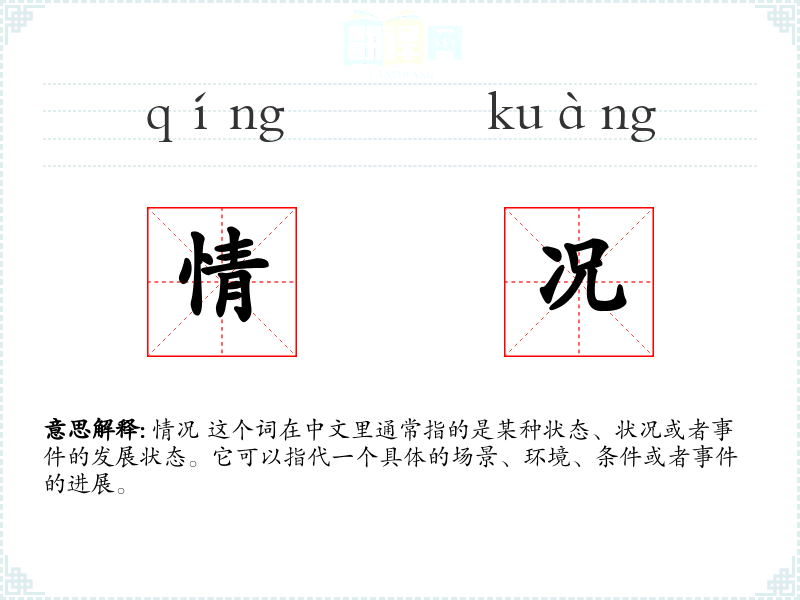 - 反义词:无(因为“情况”是一个中性词,没有直接的反义词)