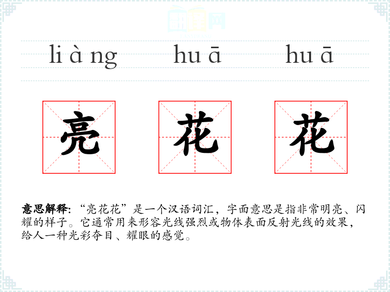 "亮花花"的意思解释、亮花花是什么意思由翻译网汉语词典查词提供。