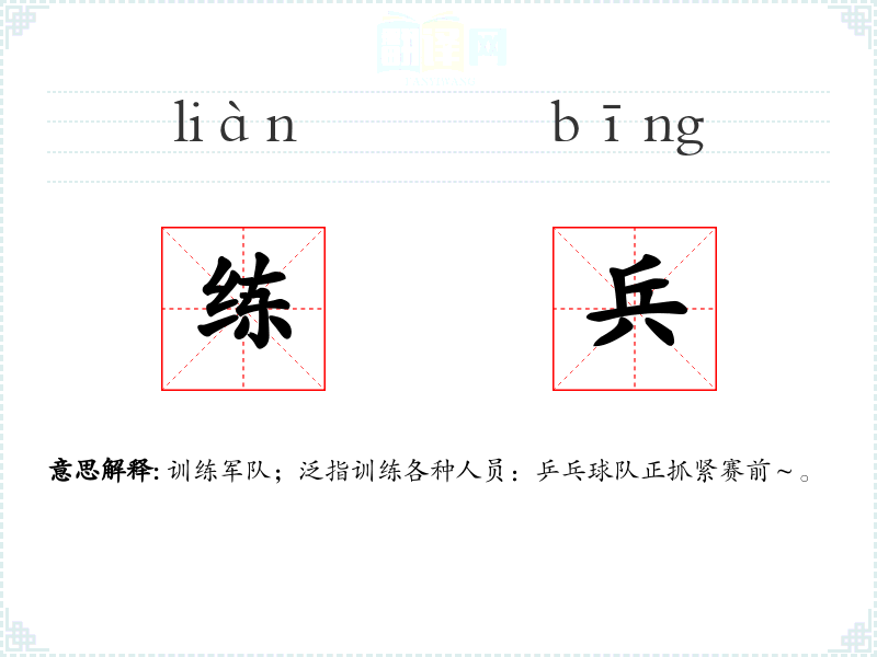 训练军队;泛指训练各种人员:乒乓球队正抓紧赛前~。