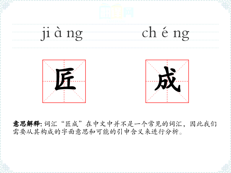 词汇“匠成”在中文中并不是一个常见的词汇,因此我们需要从其构成的字面意思和可能的引申含义来进行分析。
