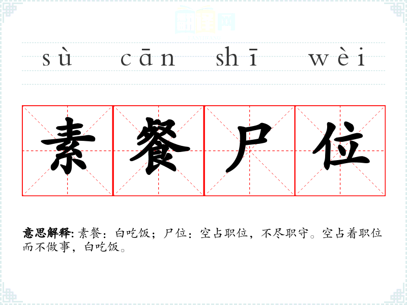 素餐:白吃饭;尸位:空占职位,不尽职守。空占着职位而不做事,白吃饭。