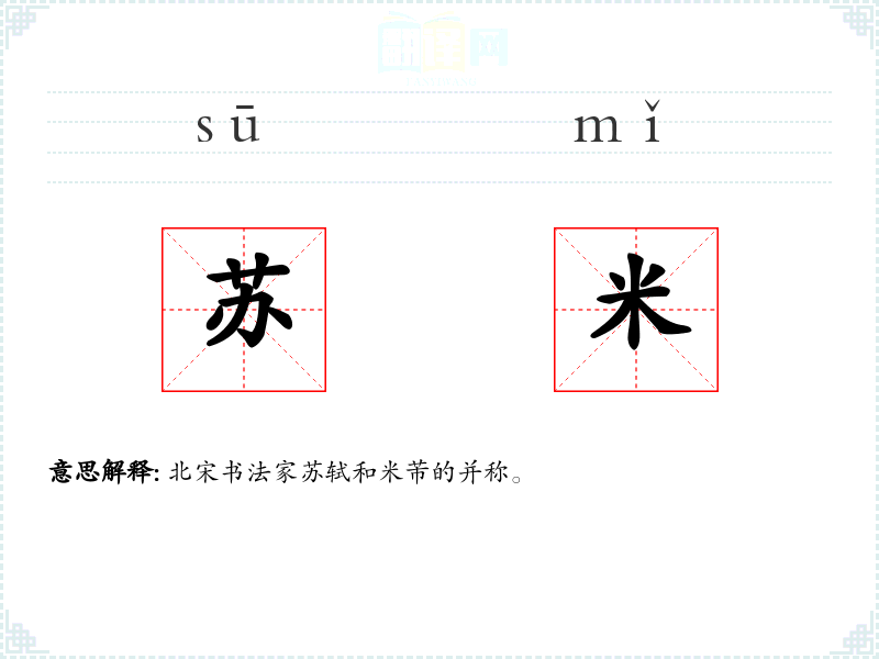 北宋书法家苏轼和米芾的并称。