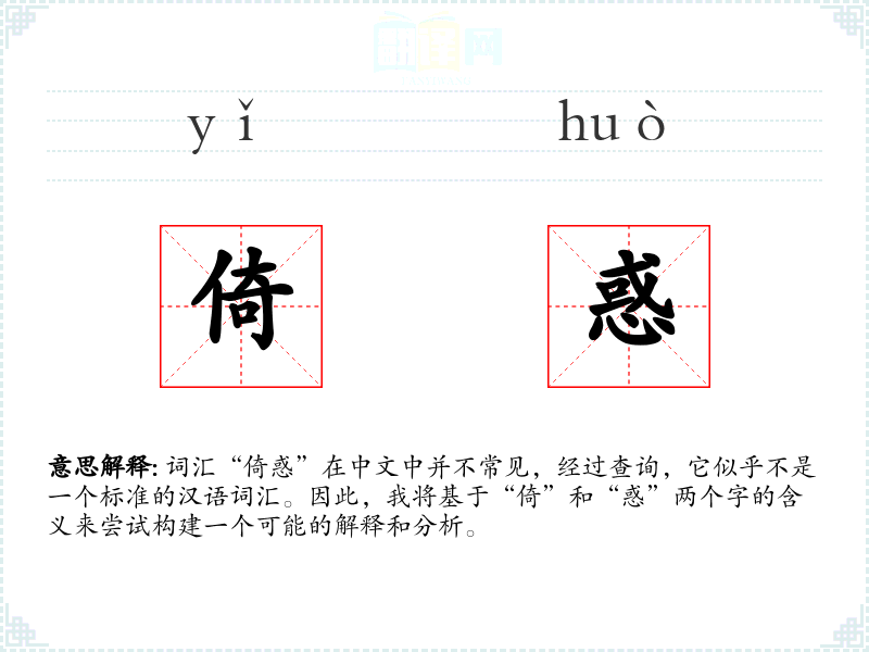 词汇“倚惑”在中文中并不常见,经过查询,它似乎不是一个标准的汉语词汇。因此,我将基于“倚”和“惑”两个字的含义来尝试构建一个可能的解释和分析。