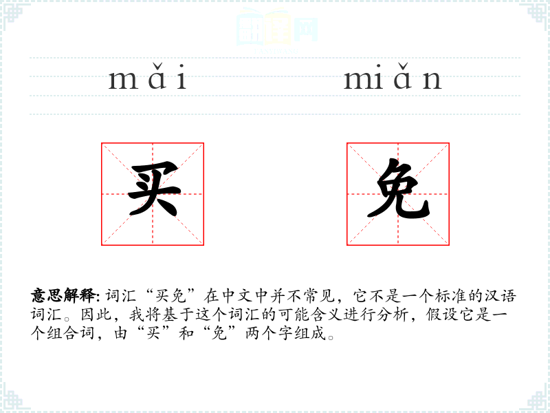 词汇“买免”在中文中并不常见,它不是一个标准的汉语词汇。因此,我将基于这个词汇的可能含义进行分析,假设它是一个组合词,由“买”和“免”两个字组成。