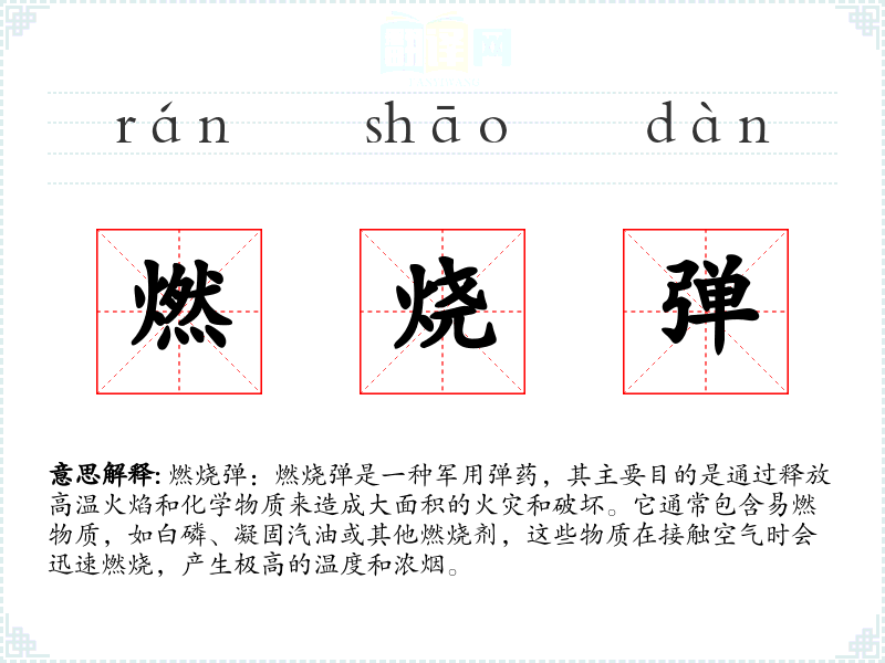- 专业领域:在军事和安全领域,燃烧弹是一个专业术语,用于描述特定类型的弹药和其战术用途。