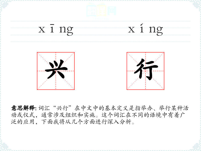 词汇“兴行”在中文中的基本定义是指举办、举行某种活动或仪式,通常涉及组织和实施。这个词汇在不同的语境中有着广泛的应用,下面我将从几个方面进行深入分析。