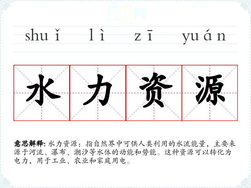 - 重要性:在语言学习和表达中,理解和正确使用水力资源这一词汇,有助于更准确地传达与能源、环境相关的信息。