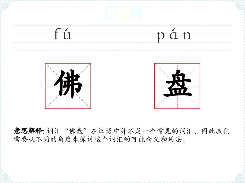词汇“佛盘”在汉语中并不是一个常见的词汇,因此我们需要从不同的角度来探讨这个词汇的可能含义和用法。