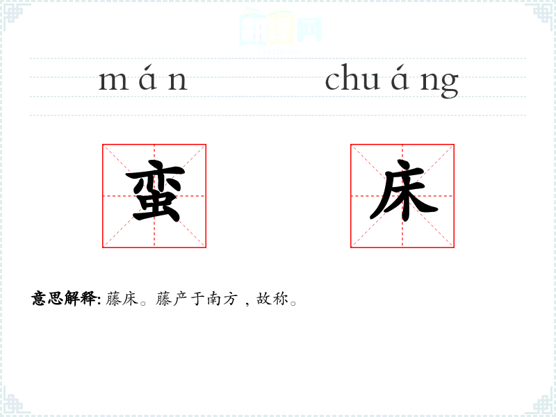 藤床。藤产于南方﹐故称。