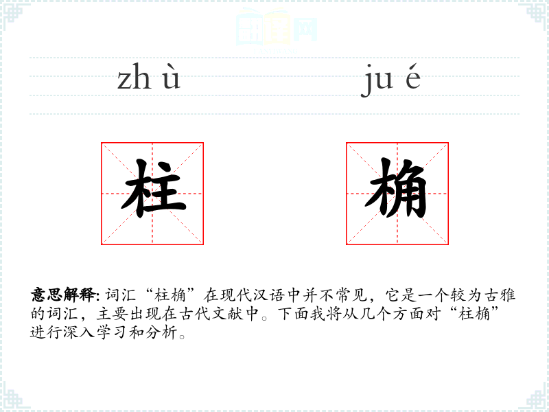 - 反义词:无(由于“柱桷”是一个较为特定的词汇,没有直接的反义词)