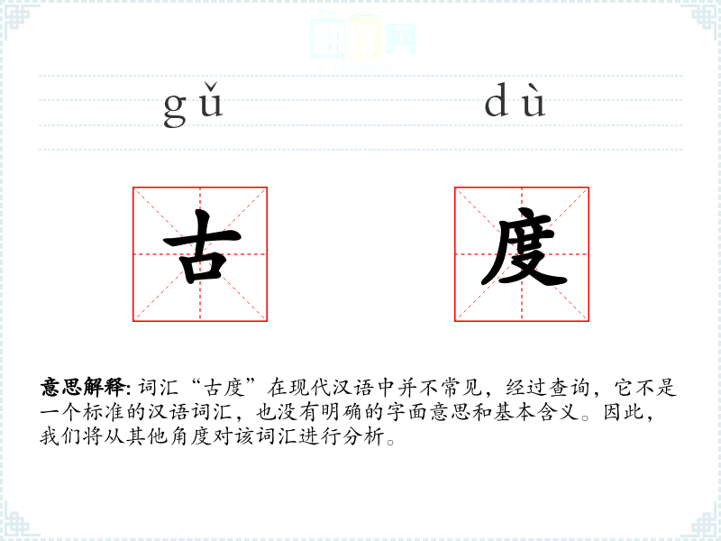 词汇“古度”在现代汉语中并不常见,经过查询,它不是一个标准的汉语词汇,也没有明确的字面意思和基本含义。因此,我们将从其他角度对该词汇进行分析。