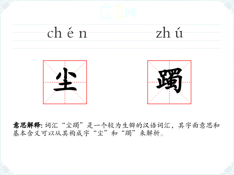 - “尘躅”是一个富有历史和文化内涵的词汇,虽然在日常交流中不常用,但在文学和历史讨论中具有重要的象征意义。了解和运用这样的词汇,可以丰富语言表达的层次和深度。