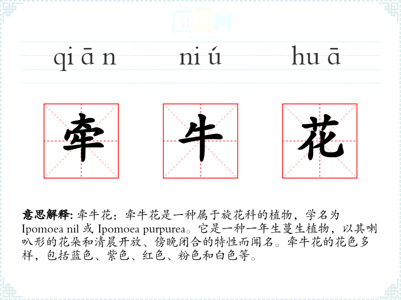 "牵牛花"的意思解释、牵牛花是什么意思由翻译网汉语词典查词提供。