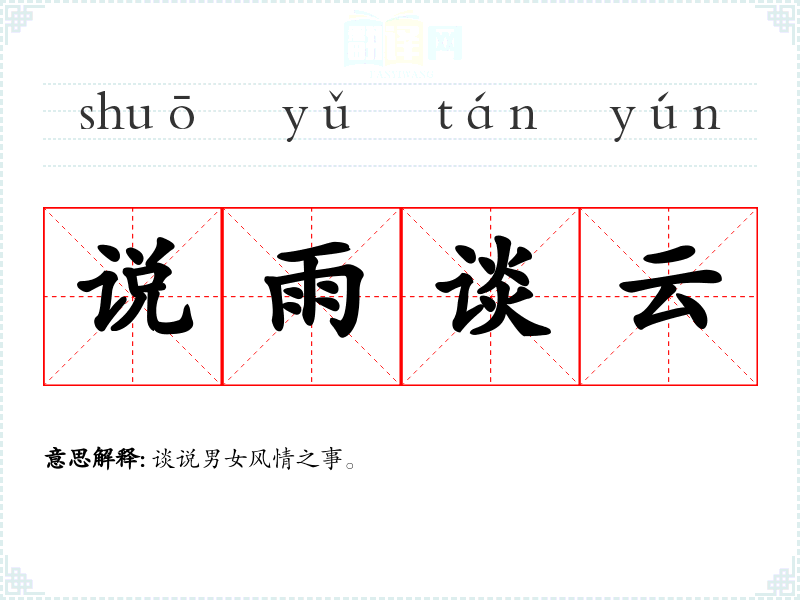 "说雨谈云"的意思解释、说雨谈云是什么意思由翻译网汉语词典查词提供。