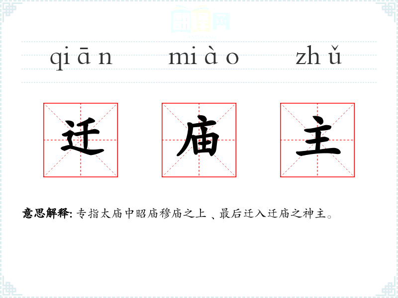 专指太庙中昭庙穆庙之上﹑最后迁入迁庙之神主。