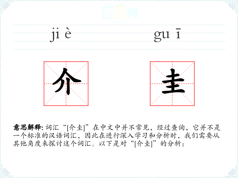 由于“[介圭]”不是一个标准的汉语词汇,我们无法提供其字面意思和基本含义。
