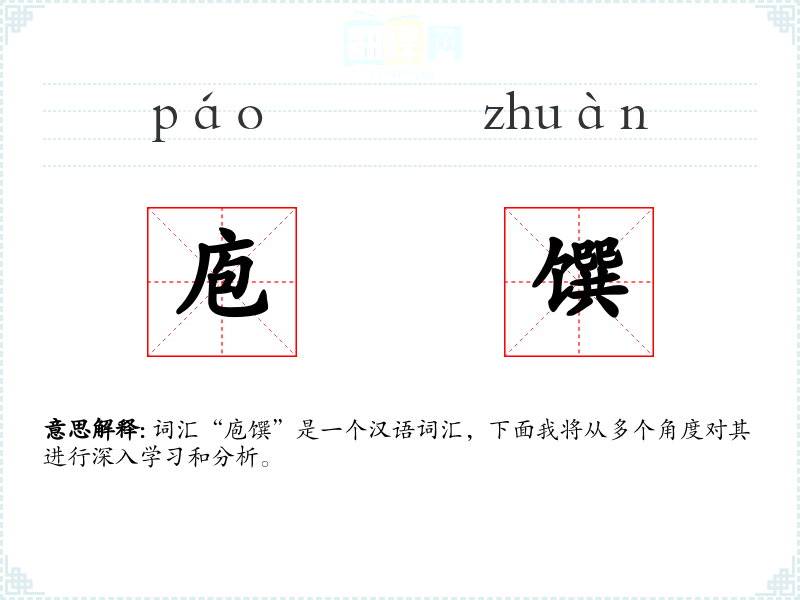 词汇“庖馔”是一个汉语词汇,下面我将从多个角度对其进行深入学*和分析。