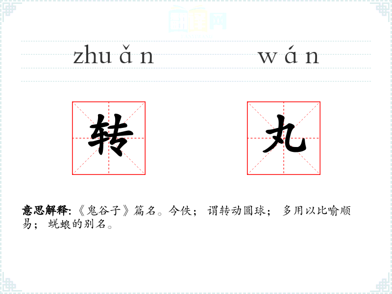《鬼谷子》篇名。今佚; 谓转动圆球; 多用以比喻顺易; 蜣蜋的别名。
