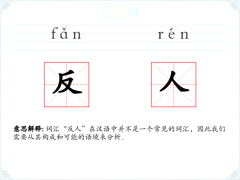 词汇“反人”在汉语中并不是一个常见的词汇,因此我们需要从其构成和可能的语境来分析。