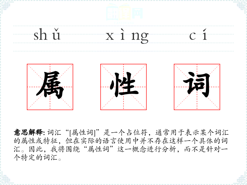 词汇“[属性词]”是一个占位符,通常用于表示某个词汇的属性或特征,但在实际的语言使用中并不存在这样一个具体的词汇。因此,我将围绕“属性词”这一概念进行分析,而不是针对一个特定的词汇。