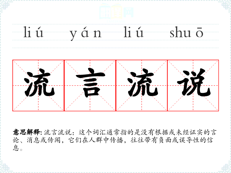流言流说:这个词汇通常指的是没有根据或未经证实的言论、消息或传闻,它们在人群中传播,往往带有负面或误导性的信息。