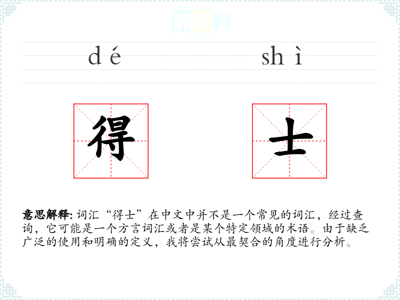 由于“得士”不是一个标准的中文词汇,我们无法给出确切的基本定义。它可能是某个地区方言中的词汇,或者是某个行业或社群中的特定用语。