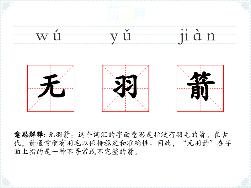 "无羽箭"的意思解释、无羽箭是什么意思由翻译网汉语词典查词提供。