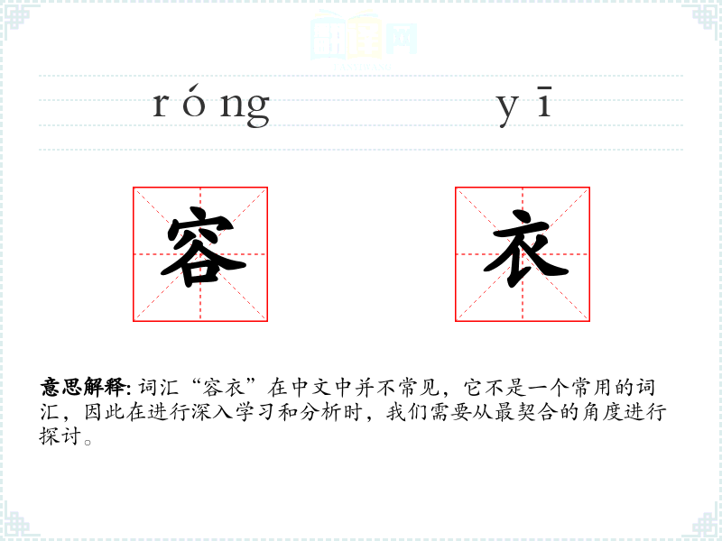 词汇“容衣”在中文中并不常见,它不是一个常用的词汇,因此在进行深入学习和分析时,我们需要从最契合的角度进行探讨。