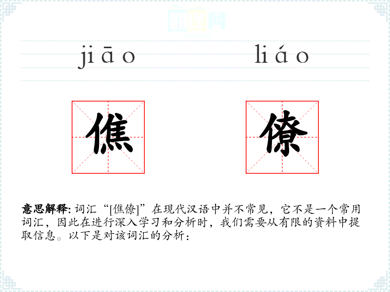 词汇“[僬僚]”在现代汉语中并不常见,它不是一个常用词汇,因此在进行深入学*和分析时,我们需要从有限的资料中提取信息。以下是对该词汇的分析: