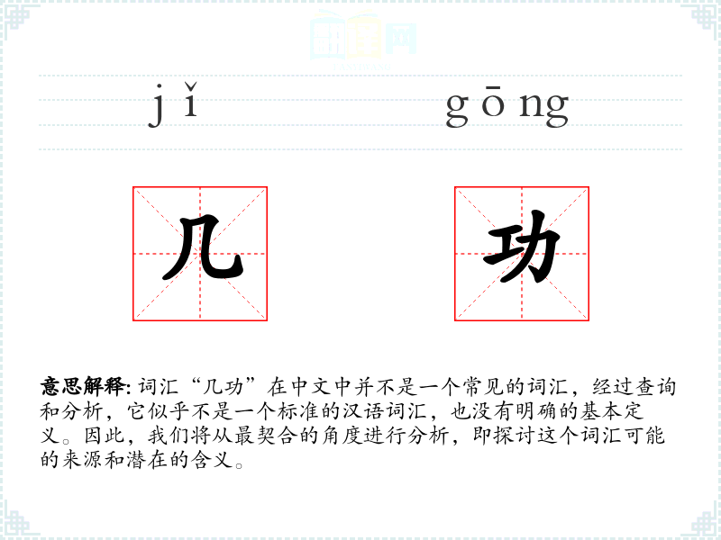 由于“几功”不是一个标准的汉语词汇,我们无法给出确切的基本定义。它可能是某个方言词汇、网络新词或者是某个特定领域的术语。