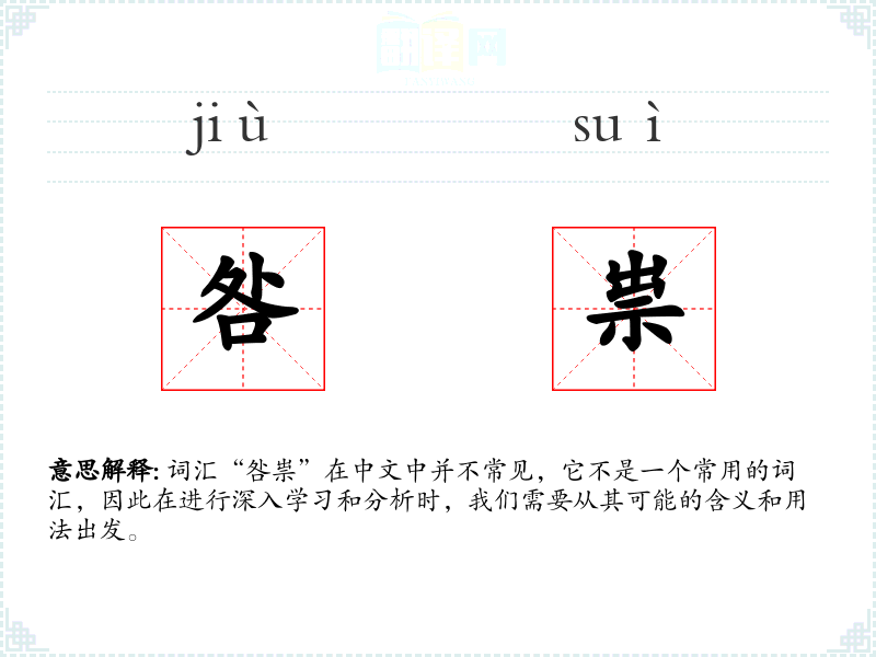 词汇“咎祟”在中文中并不常见,它不是一个常用的词汇,因此在进行深入学*和分析时,我们需要从其可能的含义和用法出发。