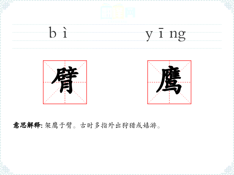 架鹰于臂。古时多指外出狩猎或嬉游。