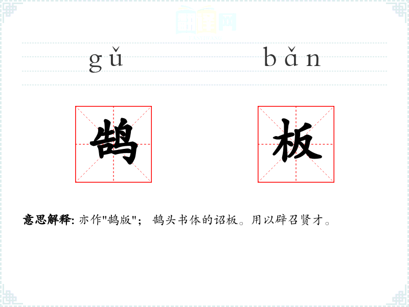 鹄板的分字解释