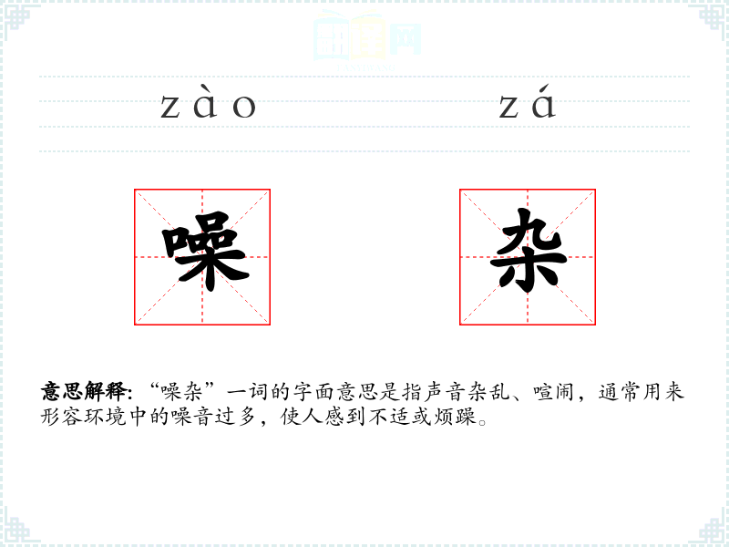 “噪杂”一词的字面意思是指声音杂乱、喧闹,通常用来形容环境中的噪音过多,使人感到不适或烦躁。