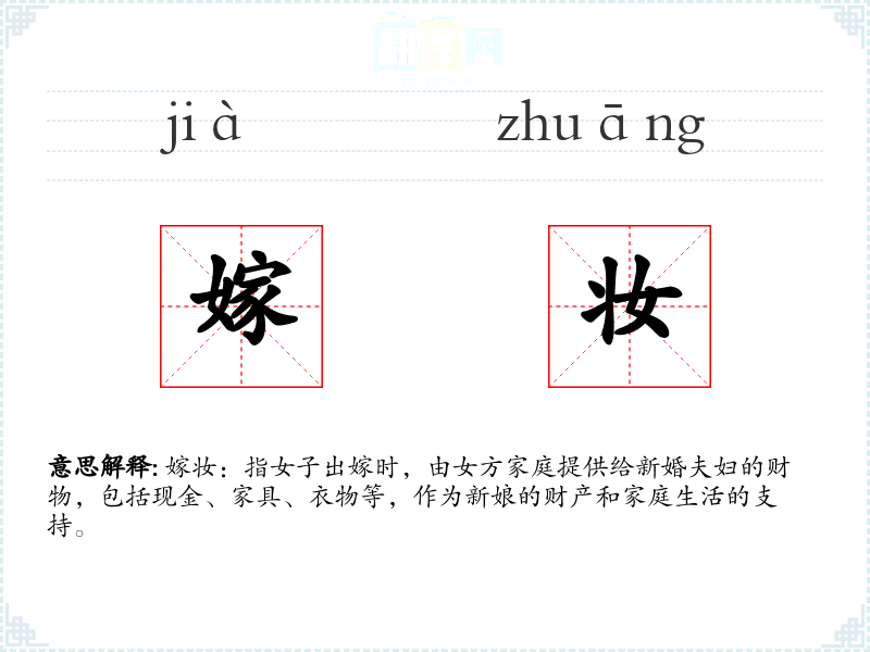 "嫁妆"的意思解释、嫁妆是什么意思由翻译网汉语词典查词提供。