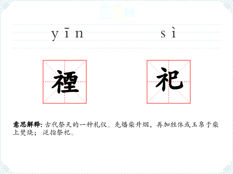 古代祭天的一种礼仪。先燔柴升烟,再加牲体或玉帛于柴上焚烧; 泛指祭祀。