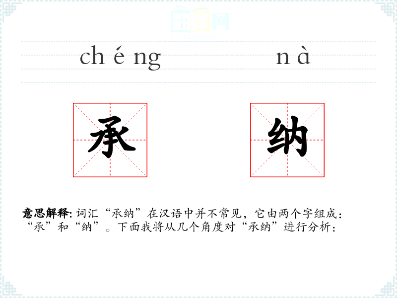 词汇“承纳”在汉语中并不常见,它由两个字组成:“承”和“纳”。下面我将从几个角度对“承纳”进行分析: