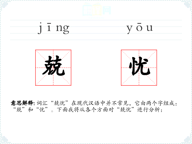 - “兢忧”是一个富有深意的词汇,虽然在日常交流中不常用,但在文学和特定语境中能够丰富表达的层次和深度。了解和掌握这样的词汇有助于提升语言的表达能力和理解复杂情感的能力。