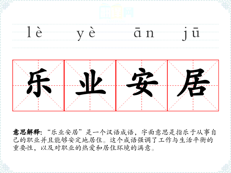 “乐业安居”是一个汉语成语,字面意思是指乐于从事自己的职业并且能够安定地居住。这个成语强调了工作与生活平衡的重要性,以及对职业的热爱和居住环境的满意。