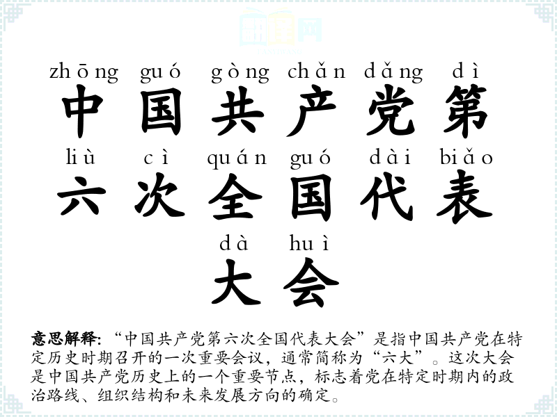 中国共产党第六次全国代表大会的分字解释