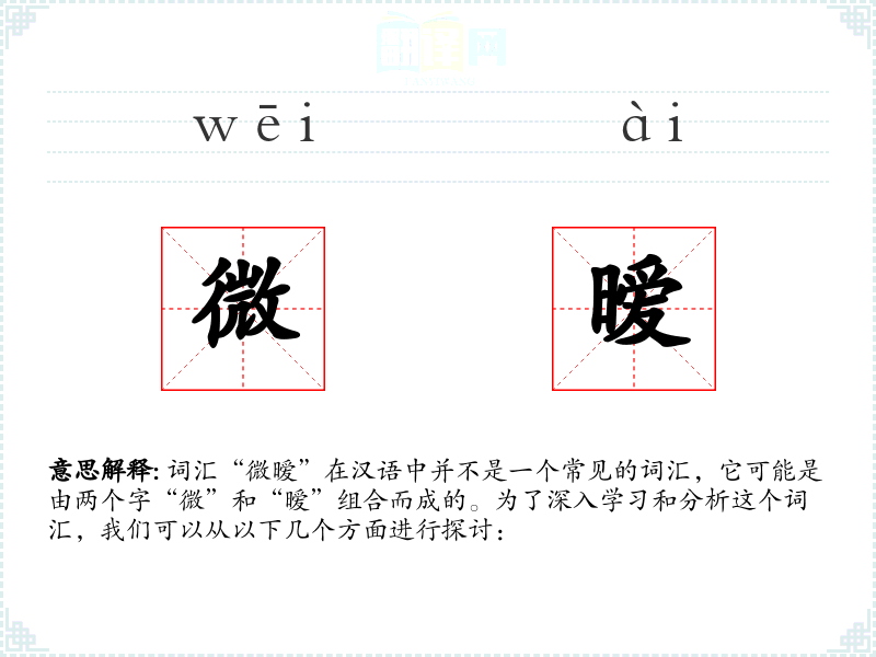 词汇“微暧”在汉语中并不是一个常见的词汇,它可能是由两个字“微”和“暧”组合而成的。为了深入学习和分析这个词汇,我们可以从以下几个方面进行探讨: