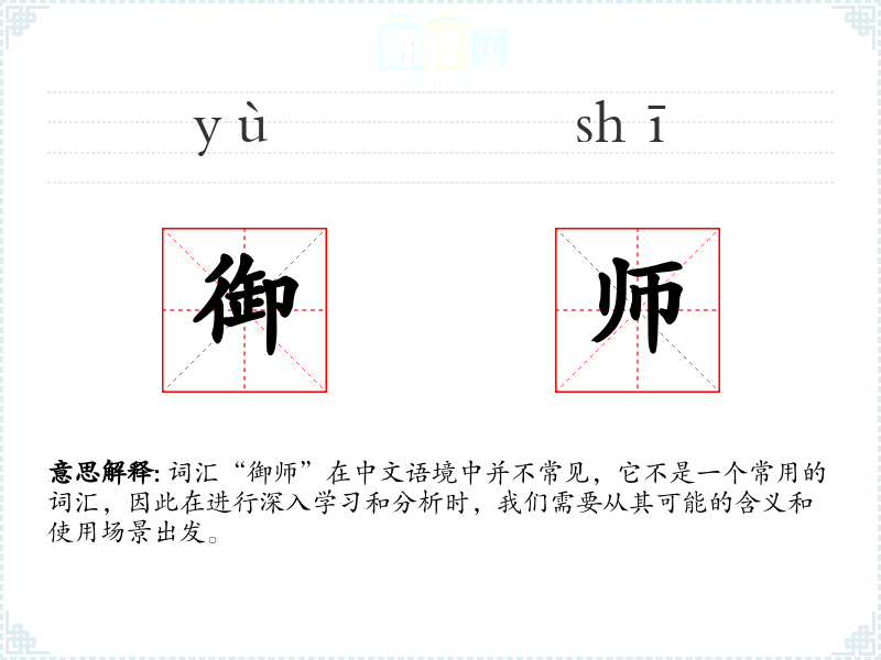 词汇“御师”在中文语境中并不常见,它不是一个常用的词汇,因此在进行深入学*和分析时,我们需要从其可能的含义和使用场景出发。