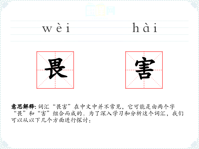 词汇“畏害”在中文中并不常见,它可能是由两个字“畏”和“害”组合而成的。为了深入学*和分析这个词汇,我们可以从以下几个方面进行探讨:
